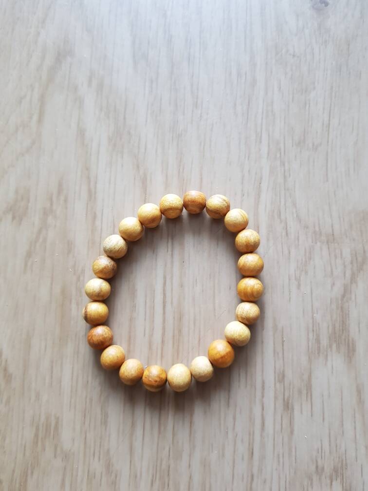 Palo Santo elastische armband met ronde kralen, gemaakt van duurzaam geoogste Palo Santo. Handgemaakt gemaakt, met oog voor het welzijn van de ambachtelijke werkers en de natuur.