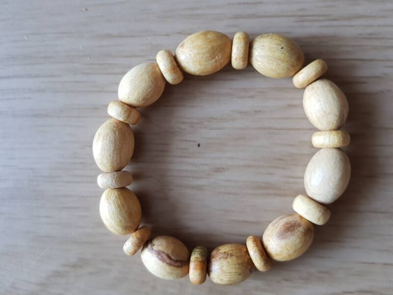 Palo Santo elastische armband met ovale en donut kralen, gemaakt van duurzaam geoogste Palo Santo.