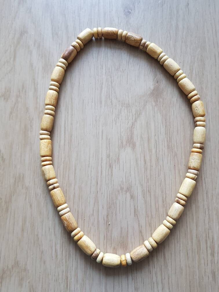 Palo Santo elastische ketting met staafjes en donut kralen, gemaakt van duurzaam geoogste Palo Santo.